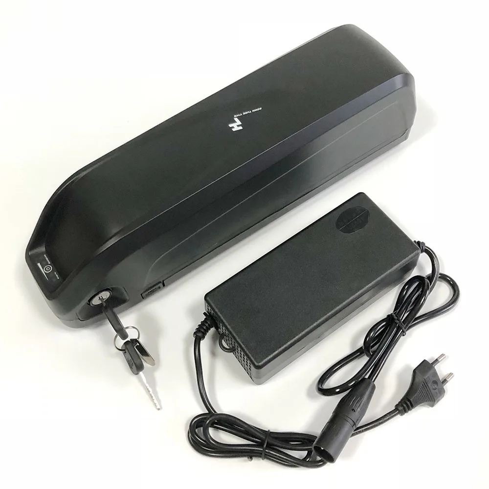 New Hailong electric bicycle battery 52V 13Ah Lithium Battery compitable with 48V 750W 1000W 8Fun/Bafang Motor 1. With USB port can charge Cell Phone and Bluetooth Speaker 2. New slim shark style Case Battery with power button 3. Convenient Charge Port support 4A faster charge 4. Waterproof and Solid plastic Case 5. Lighted battery LED power Indicator 6. Lock with Keys securely locks the mount on bike frame Electric Bike Battery Specifications Nominal Voltage: 52V Nominal Capacity: 13Ah Composed Type: 14Series 4Paralles 14S4P Cells: NCR Samsung 3.7V 3400mAh 10A 3C Cells BMS: 30 Amp continuous 70±10Amp maximum Fit Motor Power : 48V 350W 500W 750W 1000W Charge Current: 2-4A Charge Cut-off Voltage: 58.8V Discharge Cut-off Voltage: 42V Discharge Temperature: -20 to 65°C Charge Temperature: 0 to 45°C Dimensions: 90*110*360mm Battery Weight: 4.7kg Cycle life:รข‰¥80% capacity after 800 cycles. Lithium battery features 1.Longer battery life, the life expectancy is two times that of lead-acid batteries. 2.Rechargeable and no memory effect. 3.The weight is more lighter. 4.Smaller dimensions and can be customized. 5.Safer and more environmentally friendly, No heavy metals and hazardous substances. 6.BMS built-in IC chip will prevent battery pack over charge, over discharge, over-current, over-heat, short circuit . Attention Do not immerse the battery in water or seawater, keep the battery stands by in a cool dry surrounding. Does not use or leave the battery near a heat source as fire or heater. Use the battery charger specifically for that purpose when recharging. Do not reverse the position and negative terminals. Do not connect the battery electrodes to an electrical outlet. Do not discard the battery in fire or a heater. Do not short-circuit the battery by directly connecting the positive and negative terminals with metal objects. Do not transport or store the battery together with metal objects such as hairpins, necklaces, etc. Do not strike, trample or throw the battery. Do not directly solder the battery and pierce the battery with a nail or other sharp objects. We provide 1 year warranty for all electric bike batteries. Any battery with quality problem in one month we can return the money after you provide theproof. After one month we can send BMS or cells to you for repair,or you can send it back to repairas well. All our electric bicycle batteries with high quality cells and BMS, and they will be 100%tested before shipping. Wedon't supplywarranty servicefor the following situation : The battery goes over water The batteryis broken man-made The cells are burnt out after using . Return the battery without reason Open a case without contacting us